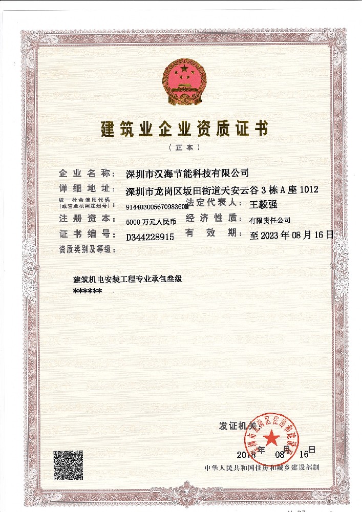深圳市漢海節能科技有限公司成立于2011年,注冊資金6000萬元,總部設在深圳,是一家集設計、研發、施工于一體的專業化從事太陽能中央熱水工程、熱泵中央熱水工程、中央空調、光伏發電、水處理等新能源及節能環保行業的綜合服務商和工程商。在將近10年的發展歷程中,始終走在行業發展的前沿,是專業從事太陽能光熱、光伏,空氣源、太陽能熱水工程、水源熱泵,中央空調,水處理產品的設計、安裝、售后服務為一體的高新技術企業;是專業提供太陽能中央熱水工程、熱泵中央熱水工程、中央空調工程、光伏發電工程、水處理工程、太陽能熱水工程等全面解決方案的供應商和工程商,產品涵蓋太陽能集熱器、空氣源熱泵、水源熱泵、中央空調、光伏組件、太陽能熱水工程等,是新能源的倡導者和推動者。公司成立以來,始終秉承“誠信、責任、專業、高效”的服務宗旨,以市場需求為導向,以為客戶創造價值為己任的精神,不斷開拓創新,通過多年的快速發展,公司綜合實力躍居行業前列。漢海擁有一支經驗豐富、善打硬仗的專業高效團隊;擁有一批專業的高級工程師、中級工程師、二級建造師、造價工程師、電氣設計師、給排水設計師;擁有一批機電、安防、水、電等專業技術施工和售后人員,配備先進齊全,實力雄厚,技術領先。漢海以質量樹信譽、以工藝立標桿、以管理創效益、以服務得人心,工藝水平在業界獨樹一幟,成為行業模仿的典范。漢海承建的機電工程(設計、施工)涉及星級酒店、賓館、高檔辦公樓、花園別墅、住宅小區、學校、水療中心、工廠等各種類型的工程,工程項目遍布全國各地。漢海將致力于成為全球信賴的新能源綜合服務商,為客戶提供新能源的全方位解決方案。未來,漢海將依托國家政策,積極開拓粵港澳大灣區、中國特色社會主義先行示范區市場及“一帶一路”沿線國際市場,推動新能源的新輝煌。